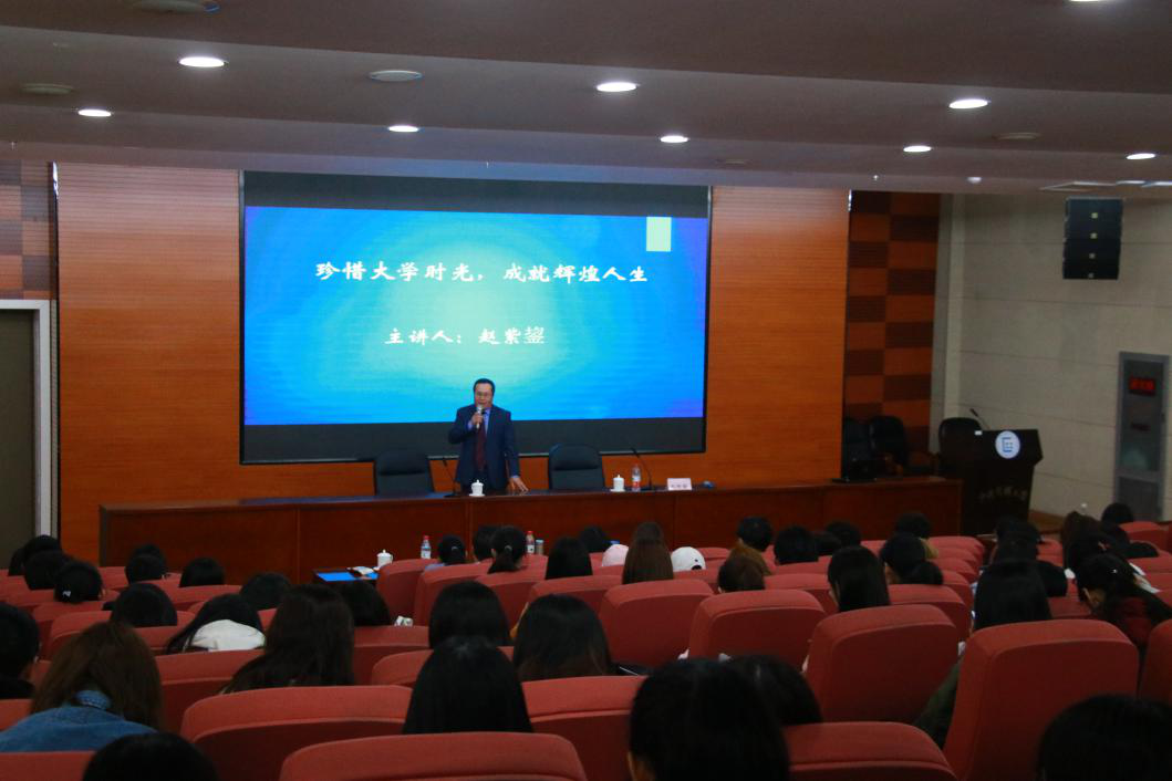 为更好地让大一新生适应大学生活,高效利用四年的大学黄金时光,确立目标、培养人生的规划意识,必威西汉姆联官网特邀请知名校友赵紫鋆先生于4月8日上午9:00-11:30,在文化楼一层报告厅,面向必威西汉姆联官网18级全体学生开展了以“珍惜大学时光,成就辉煌人生”为主题的讲座。必威西汉姆联官网院长张丽君、副院长张春敏、副院长王润球出席了此次讲座,讲座由张春敏副院长主持。