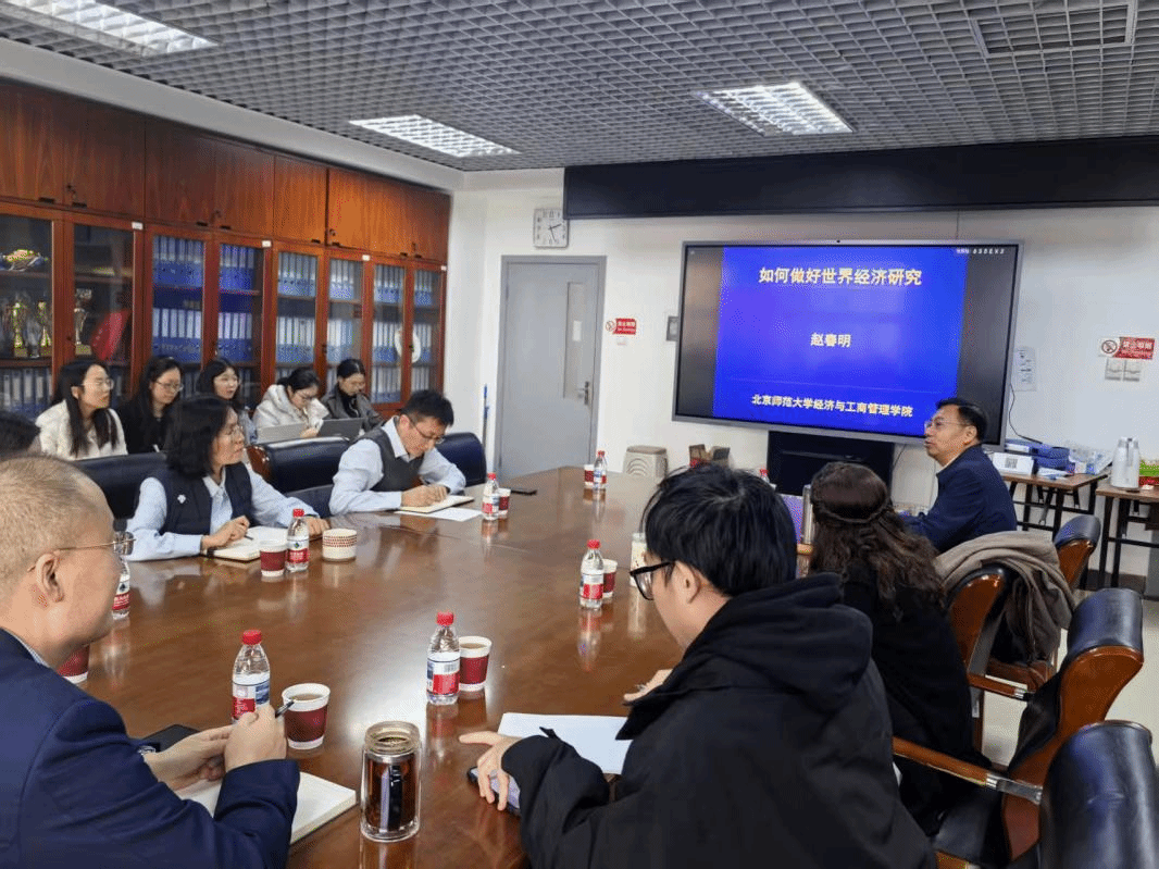 2025年11月11日下午,必威西汉姆联官网于海淀校区文西1227会议室,成功举办了知行大讲坛第二十七讲——如何做好世界经济研究,北京师范大学京师特聘教授赵春明主讲。讲座由必威西汉姆联官网副院长时保国主持。
