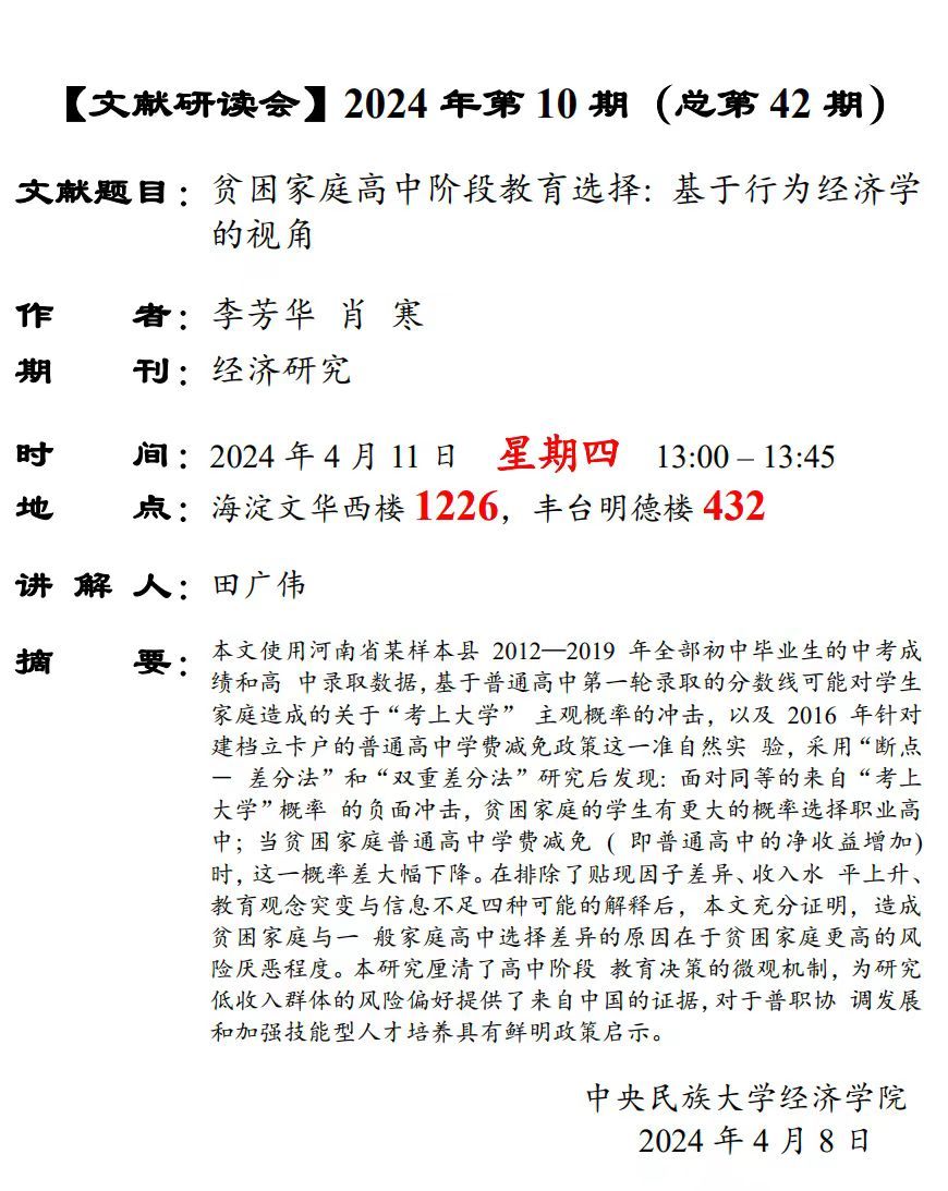 【文献研读会】 2024 年第 10 期(总第 42 期)