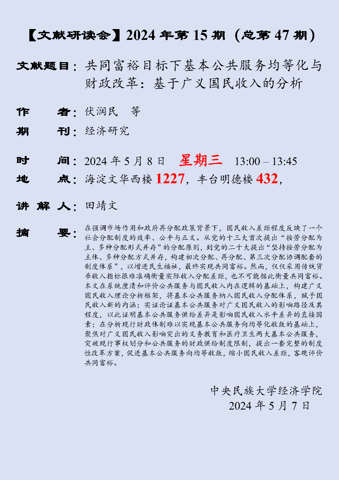 【文献研读会】 2024 年第 15 期(总第 47 期)