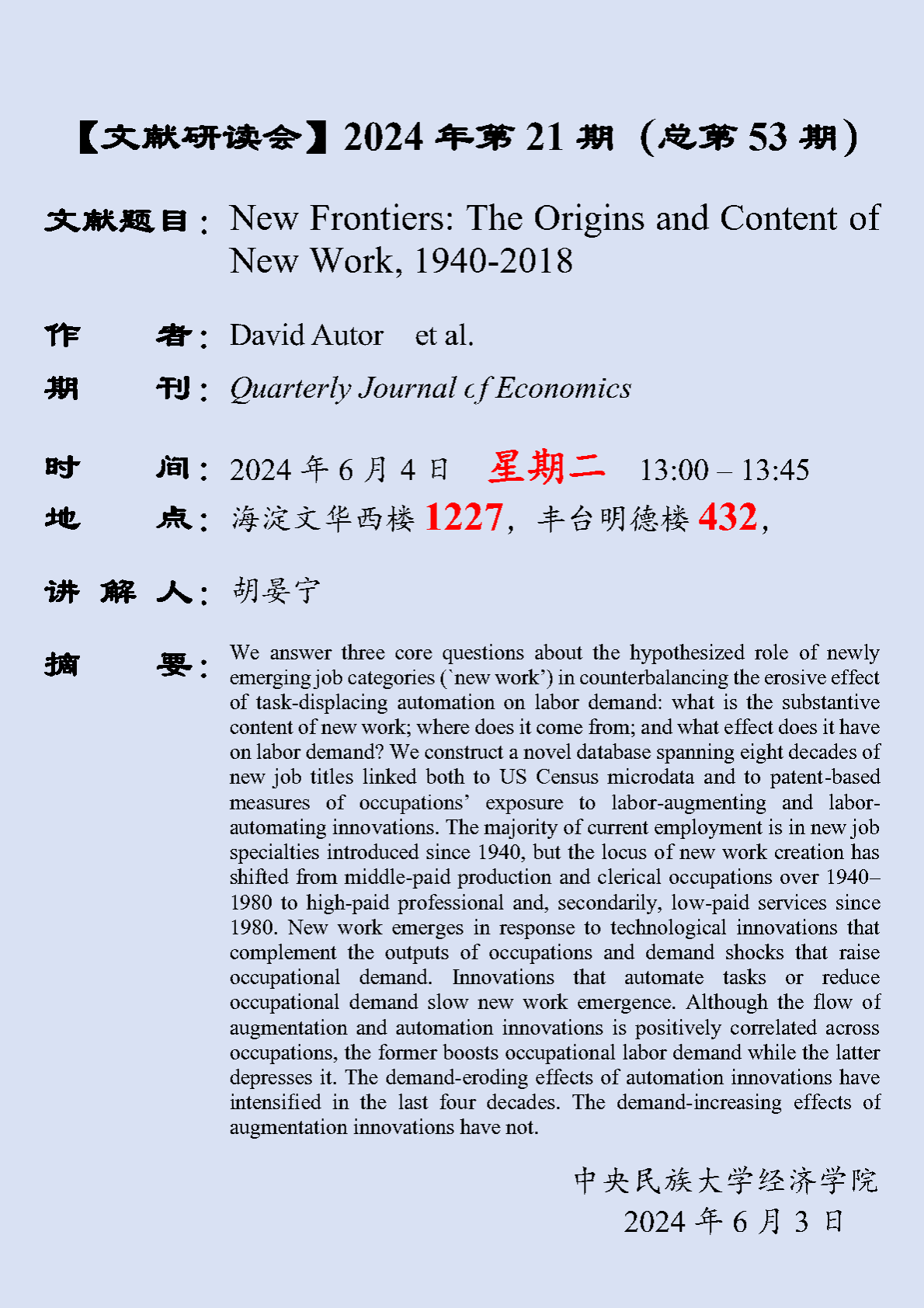 【文献研读会】 2024 年第 21 期(总第 53 期)