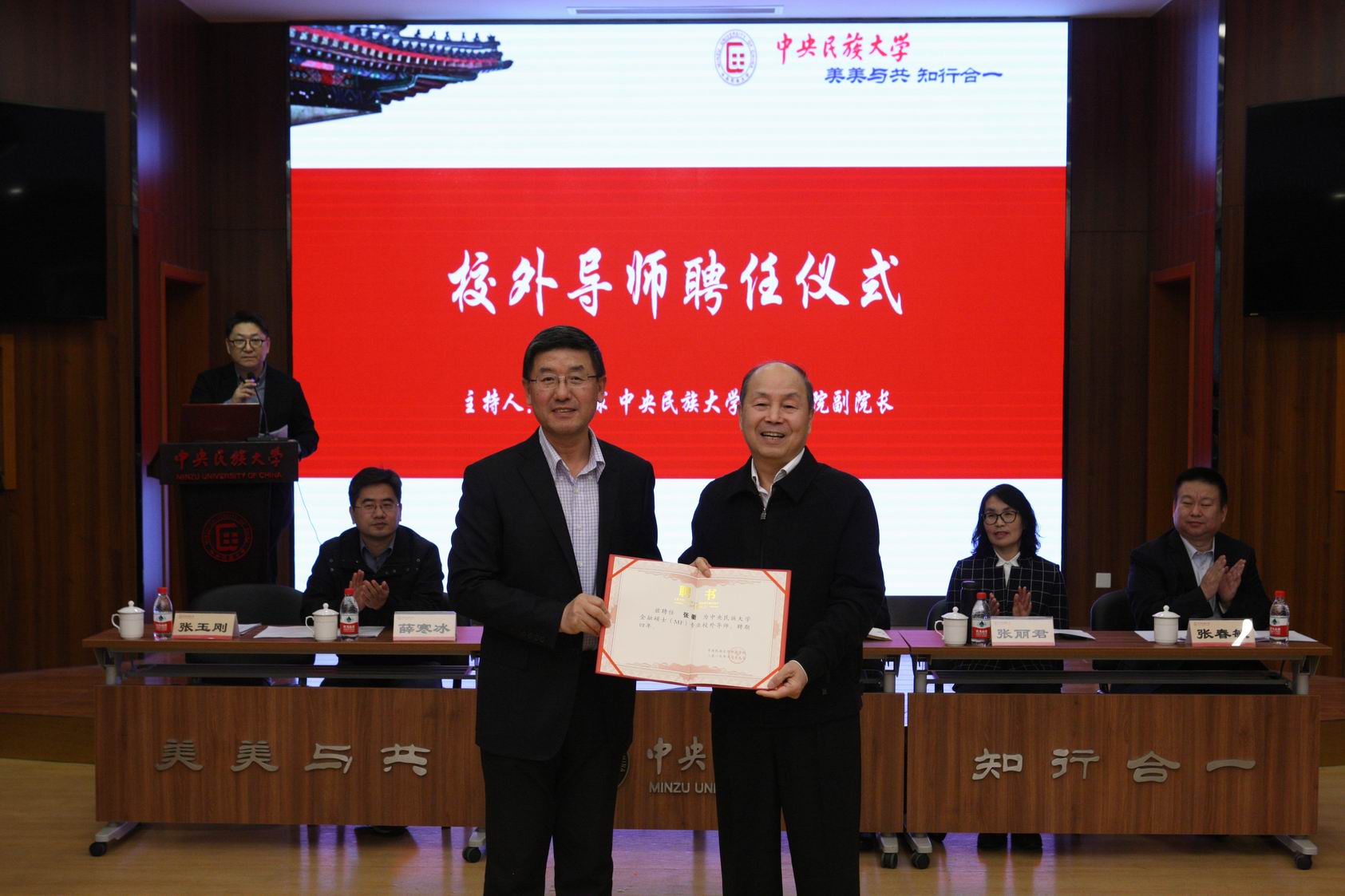 大会第一阶段即开幕式,由betway88西汉姆网页必威西汉姆联官网党委书记张玉刚主持。betway88西汉姆网页校长黄泰岩在致辞中首先表达了对各位受聘导师的热烈欢迎,表示此次大会作为体现“尊师重道”精神的仪式,意义深刻。同时,黄泰岩校长强调双导师制目的在于扩大研究生招生规模和推进研究生的培养质量,他坚信有各位校外导师加入betway88西汉姆网页的研究生导师队伍,一定会对我校“双一流”建设起到重要的助推作用。必威西汉姆联官网院长张丽君教授在致辞中对betway88西汉姆网页必威西汉姆联官网进行了介绍,从“三个第一”到“两个国字头”,展现了betway88西汉姆网页必威西汉姆联官网在民族高等教育中的鲜明特色。张院长表示虽然必威西汉姆联官网专业学位硕士培养起步较晚,但有其自身的比较优势和特色,相信在国家政策和学校办学的支持以及在座各位导师的凝心聚力、鼎力支持下,必威西汉姆联官网的专业学位硕士培养大有可为。